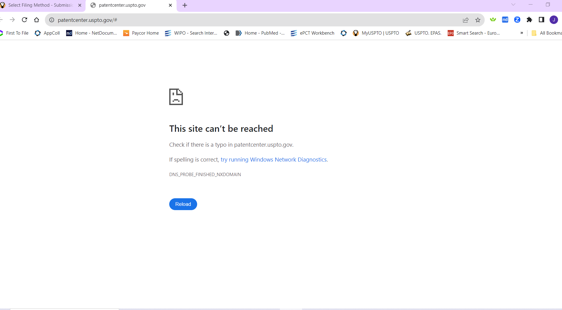 [Patentcenter] MyUSPTO--Site can't be reached?