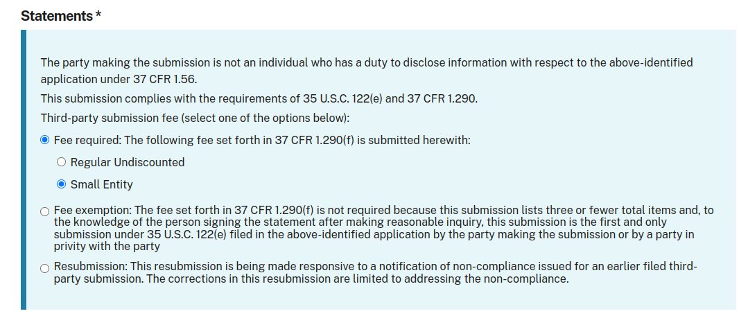 [Patentcenter] 3rd party submission fees