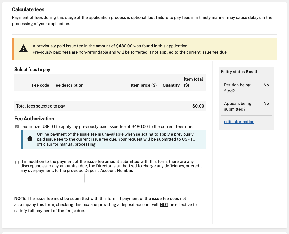 > Why were you paying the Issue Fee again?