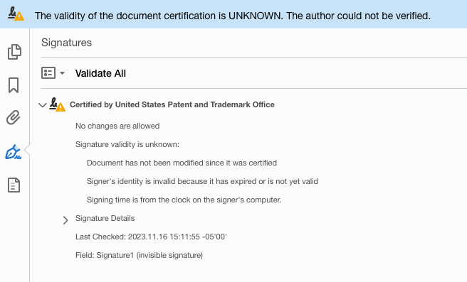 BTW, this prompted me to review the signatures on a recent eGrant. In that case it says: “Signed and all signatures are valid.” Phew!