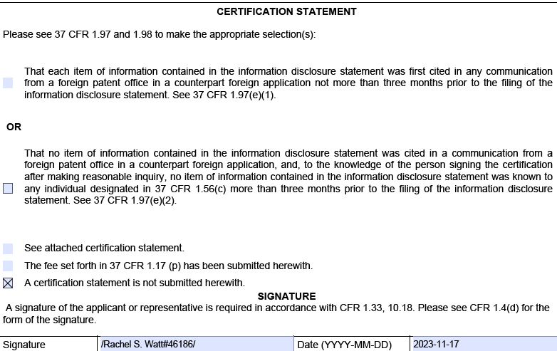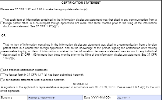 that Certification page in the submitted IDS in the IFW is marked as