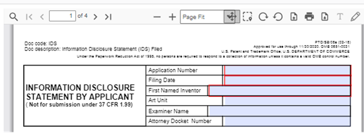 Here is the typical top section of the IDS form that does not show in the preview: