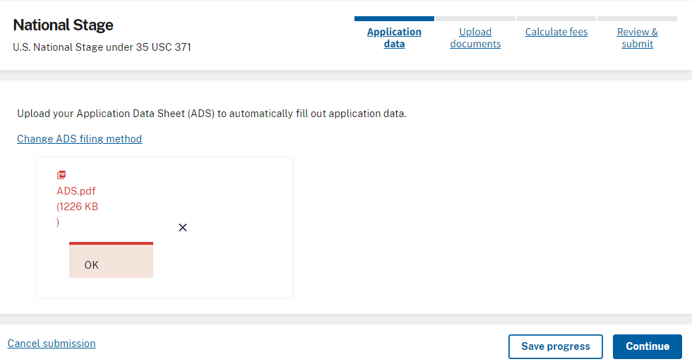 [Patentcenter] ADS upload issues - OK message