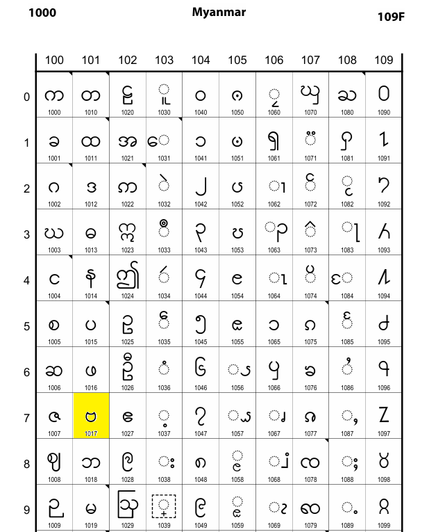 1019 မ MYANMAR LETTER MA