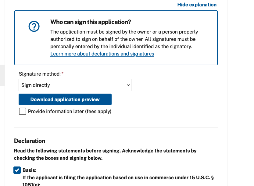 [E-trademarks] Submitting an Application after client has signed in the Trademark Center