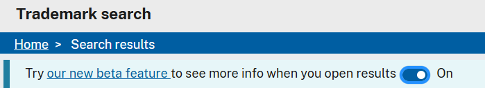 There's a new beta feature on Trademark Search. Here's a snapshot of the notification on top of the search screen.
