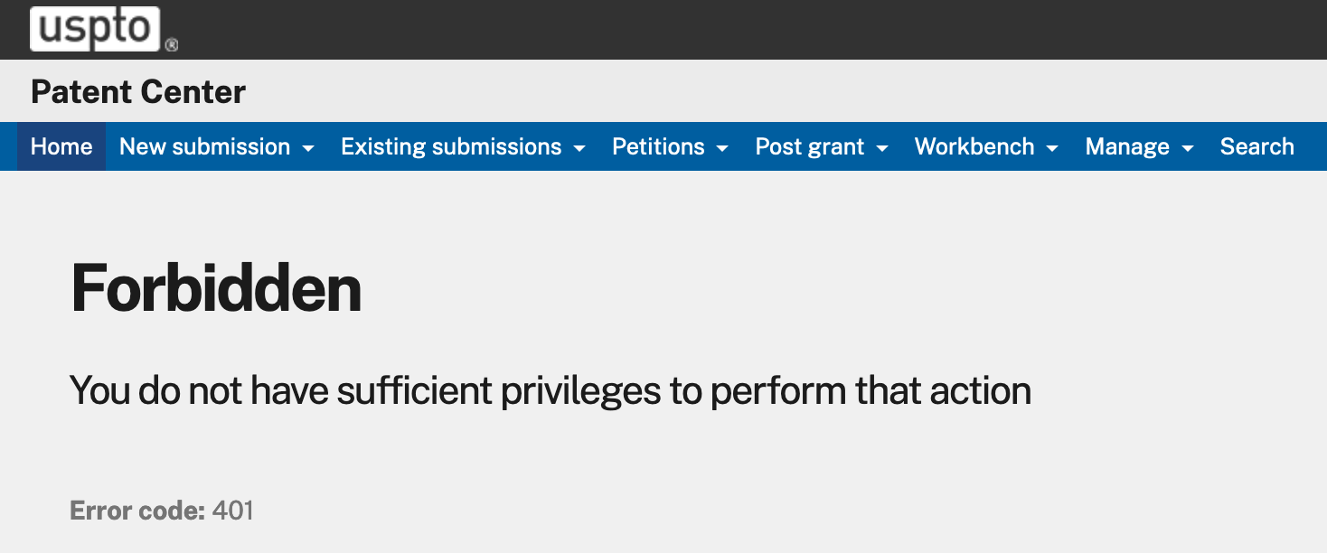 Subsequent to this, I found that when logging on to Patent Center, even if I was signed on under MyUSPTO, I could not get to anything, just a blank screen with the url showing […]401.