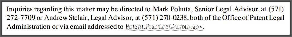>> Senior Legal Advisor, at (571) 272-7709 or Andrew Stclair, Legal