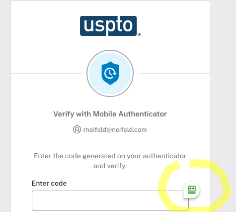 My authenticator, WinAuth, doesn’t put that little icon there. Or the USPTO didn’t