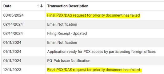 > Even checking in DAS, it showed the USPTO has successfully retrieved
