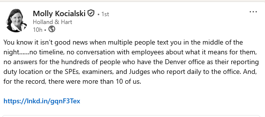 I also heard a rumor (maybe it is old news) that the Denver regional office employees were not part of a back-to-the-office order, and rumor is it is shutting down?