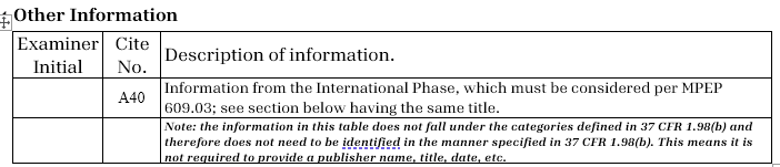 > According to MPEP 609.02(I) and (II)(A)(2), any information